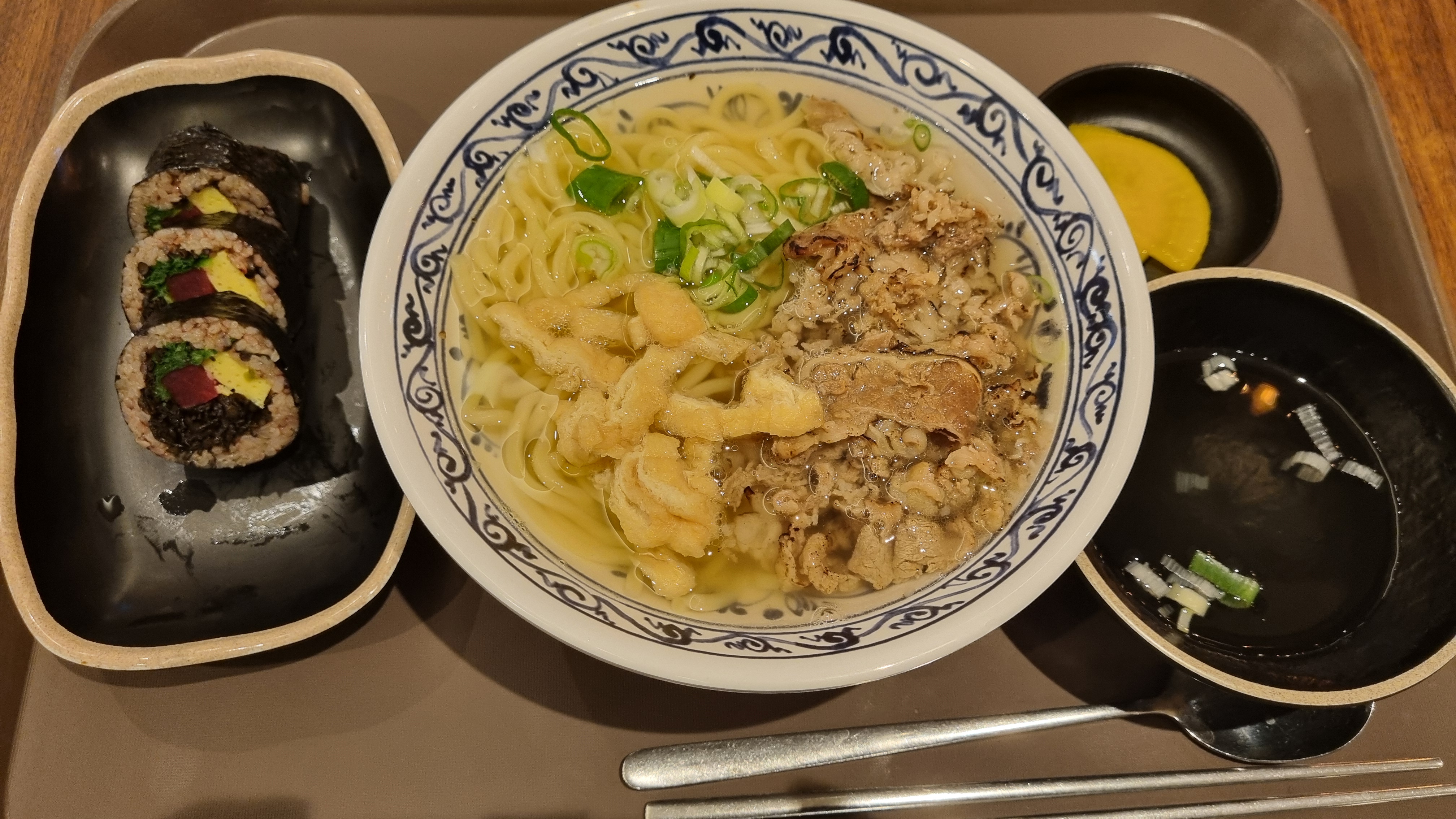 내가 주문했던 것은 톳김밥(반줄짜리)과 우삼겹 우동.